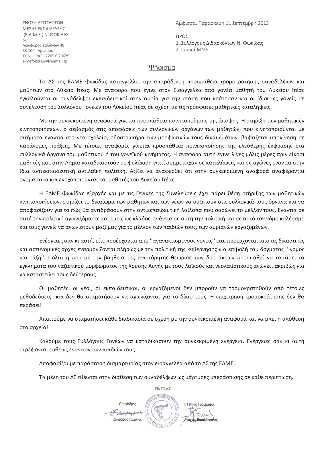 02-10-2013 Ακόμα μια άρνηση του Υπουργού Παιδείας για συνάντηση με την ΟΛΜΕ